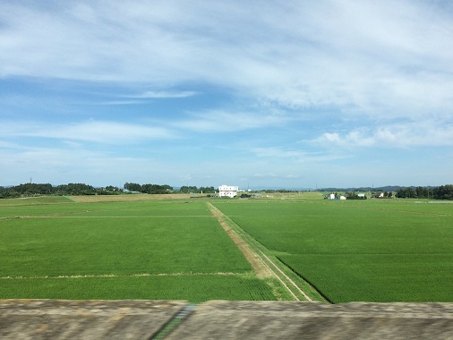 Many people got off at Sendai, including the group so the car became very quiet. While the train moves up north, I was looking up the sunny sky, and exchanging emails with job agents. The train was passed by other faster one maybe twice on the way to Shin-Hanamaki, Soon the train arrived at the destination at 11:54am on time. (done)