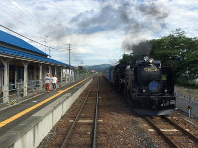 Changed train back to Kamaishi Line, the diesel train began to move toward Tono. On the way back, we were lucky that we get to see the steam locomotive coming from the other way. I was amazing.