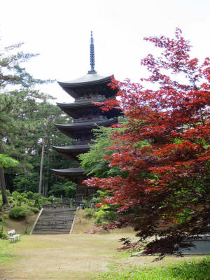 After arriving at Hiraizumi station, we walked to Chusonji Temple. It was a few miles and going uphill. From the entrance of the Temple, there are series of places until stopping at Hongo