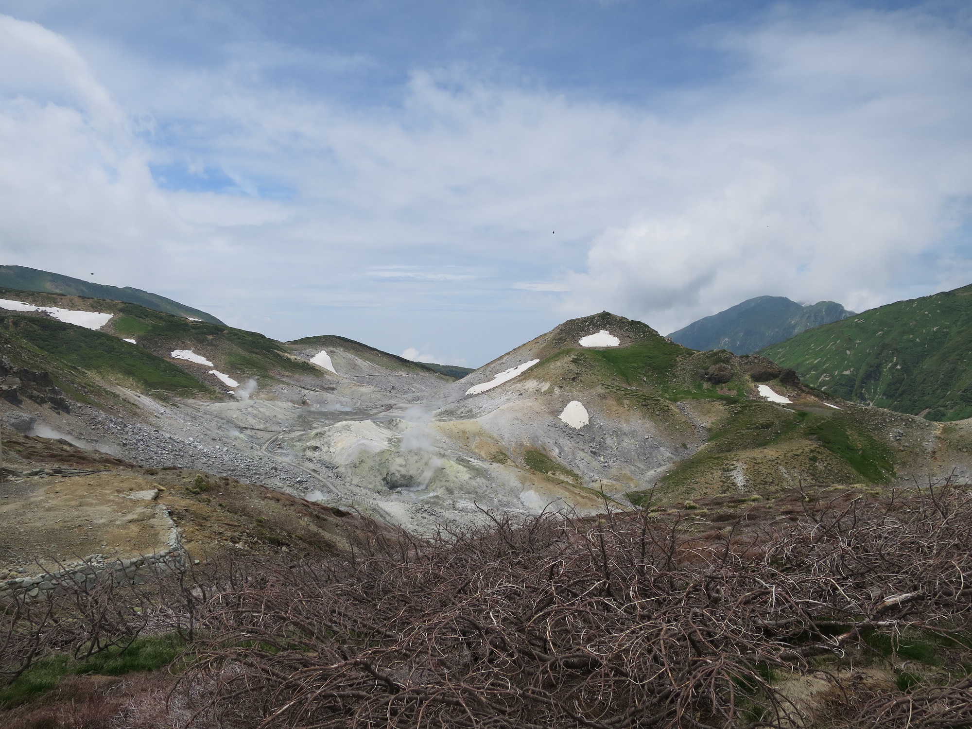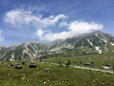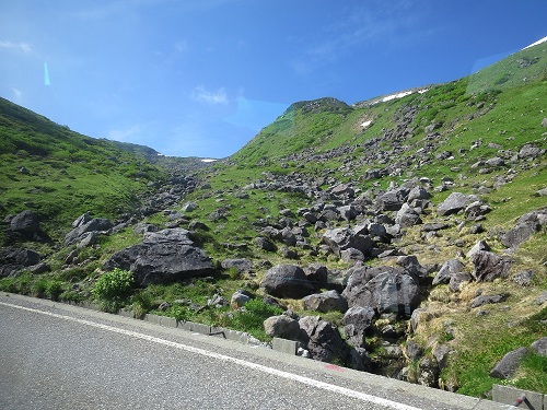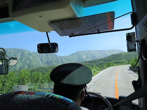 Connecting to a highland bus. There was a choice for people stopping enroute, and also the one going direct to Murodo. I picked latter one. The bus left Bijodaira at 8:20am, the entire route is a winding road. The bus stopped at a few spots to show passengers nice view. The bus kept going and finally arrived at Murodo 9:10am.