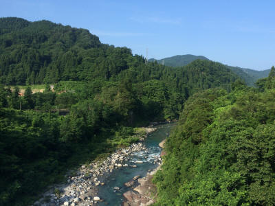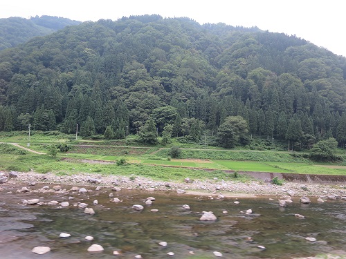 Now the train moved in more mountain area, narrow passages by rocky walls, many tunnels and crossing river over bridges and river itself goes right and left of the track. I get to enjoy the variety of sceneries as the time passed. Later the train began moving in the plain, and began to slow down as it getting close to Toyama.