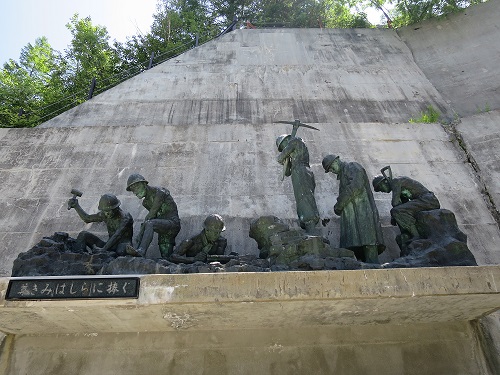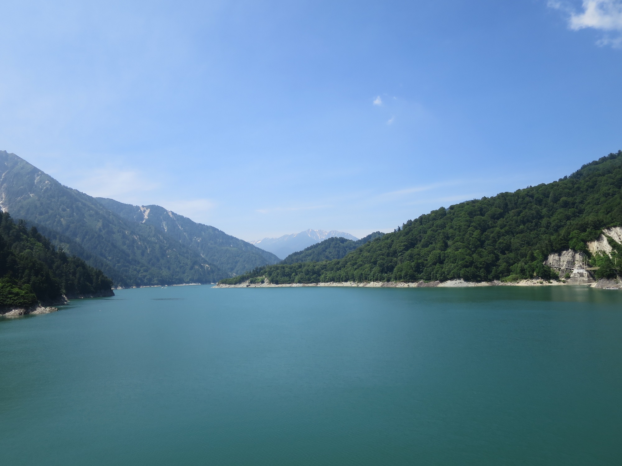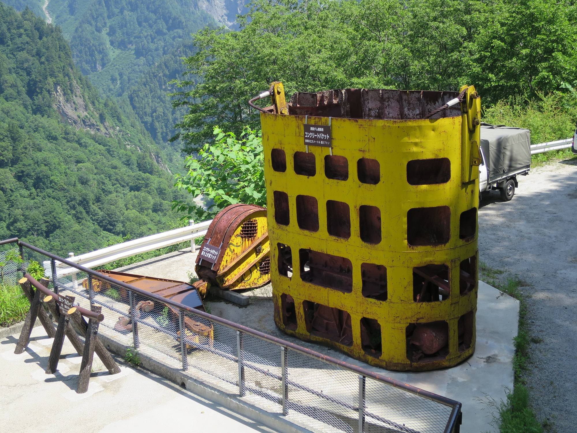 Walking out from the station, I started my trip from 6:00am and took nearly 4 hours to get here. The view opened up as I come out from the tunnel and the dam is right there. The sun was shining down as I walked cross to the other side. On the way, I get to see the water been released to my left, showing rainbow, and right side is a lake like reservoir. After reaching to the other side, I took stairs for a view from upper observation deck. I then went down to another observation deck at lower side. There were some exhibits, such as panels showing the background and history of Kurobe dam, as well as a concrete bucket used during the construction.