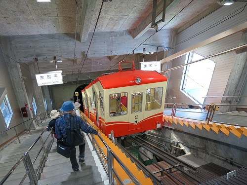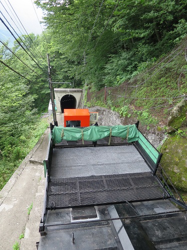 Taking a cable car up to Kurobe Daira station, I get to see the front this time so I can see how steep the track is.