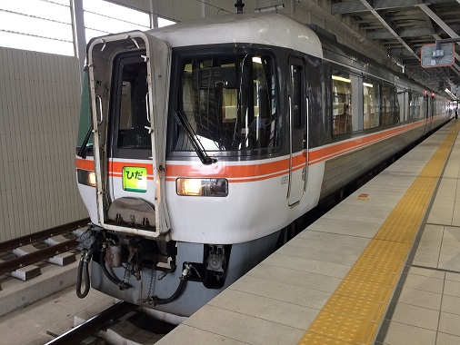 The train came in to the platform at 8:15am. Hida 3 left Nagoya at 8:43am on time, at first the train moved backward until arriving at Gifu, where they switched from Tokaido Line to Takayama Line. The train began to move in normal direction as it was leaving Gifu at 9:00am. The train kept going and passed most of the stations and arrived at Takayama at 10:55am. Where the train separated into two trains and now only three cars heading toward Toyama.