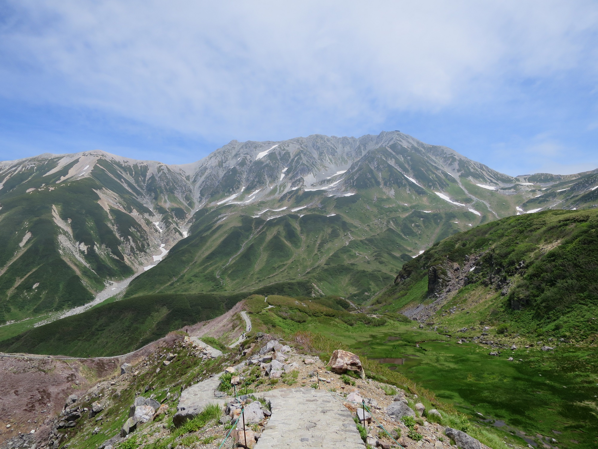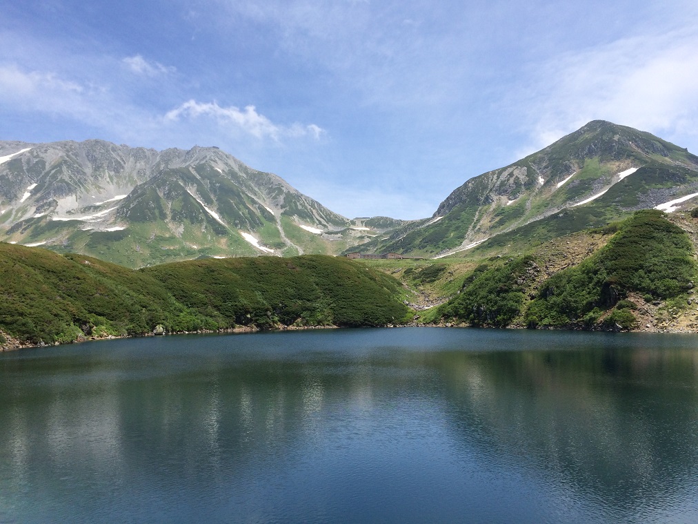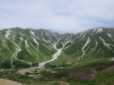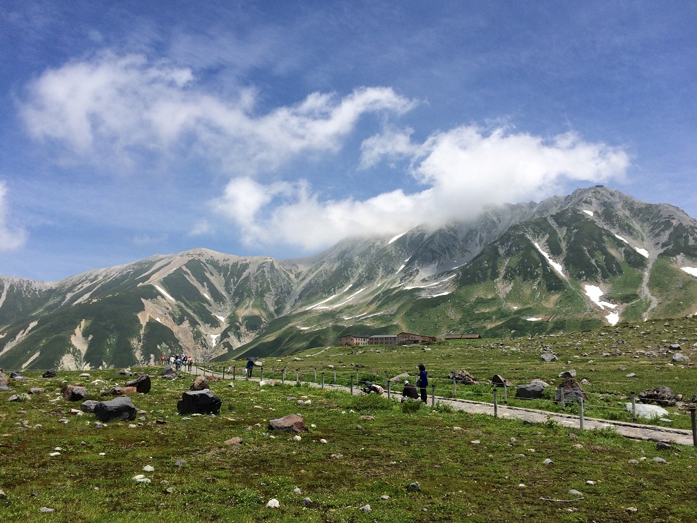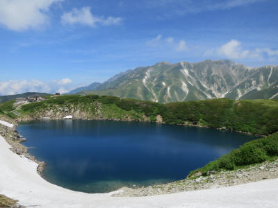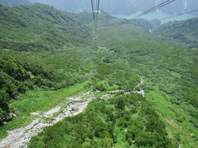 From here, a ropeway takes us from Daikanbo to Kurobedaira. The car was unlatched from the hold and slowly start going down the slope. On the way down I get to see a rocky trail which used to be the regular route before the ropeway was constructed. The Kurobe lake is getting bigger and nearer every minutes.