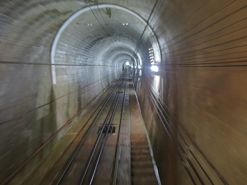 After paying respect at the memorial, I walked back inside the tunnel to catch a cable car back toward Tateyama.