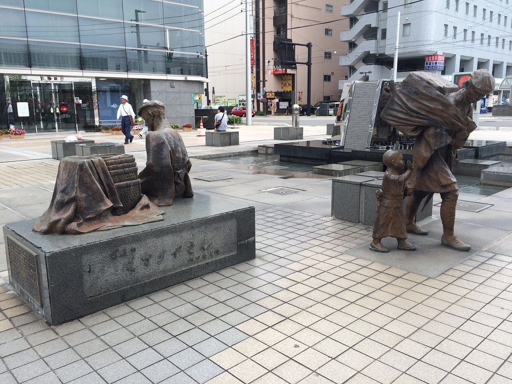 I went upstairs to walk out from the building. I began my walk to a lake, and Jigoku Dani. Come back after making a stop at the memorial. Bought some gift and lined up for homeward bound bus.