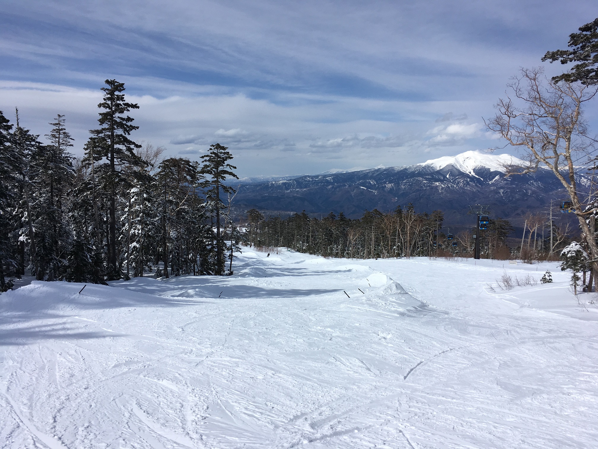 I get my gears and changed into ski wear. I locked up items in a coin locker then without any warm up, I took a ride to the peak. The view from the top gives me another clear view of Mt. Norikura for this time. For this time, there are many people as well as coming in a family. Due to the raise in temperature, it was a little different from the last couple of days and I had to learn how to adjust for it.