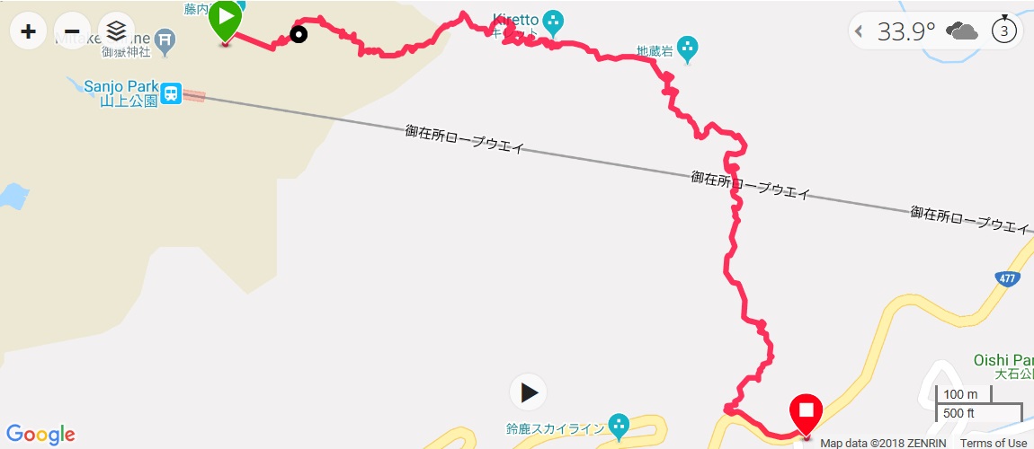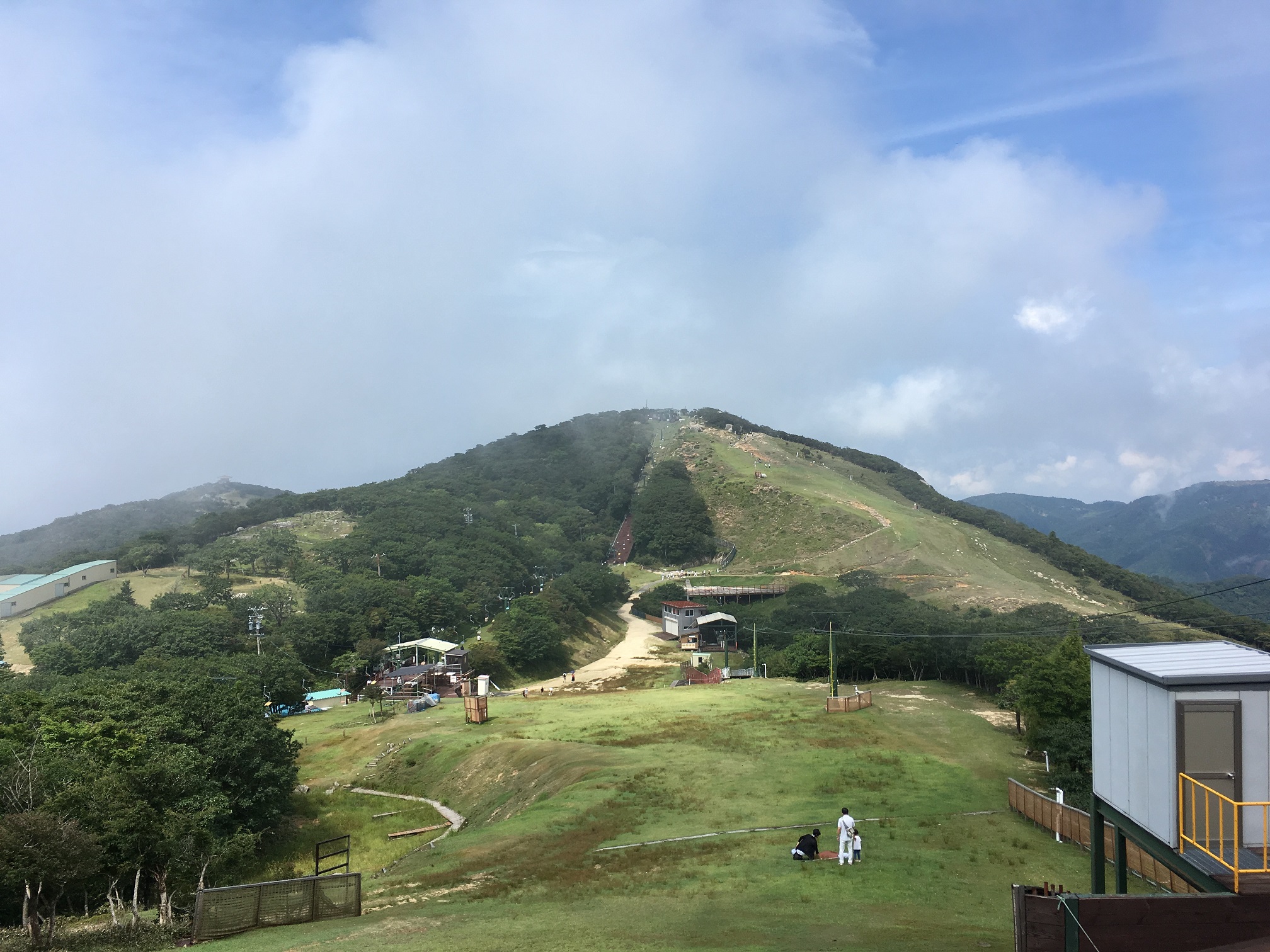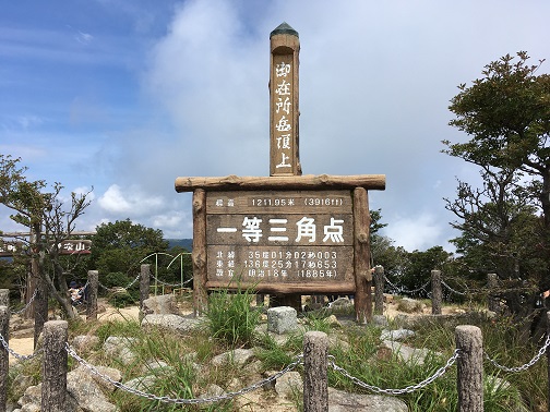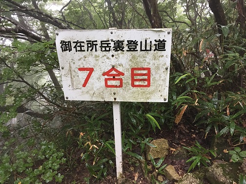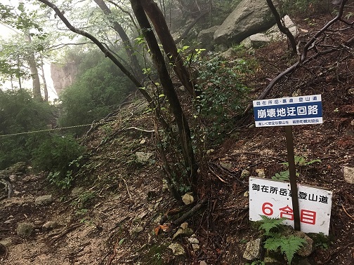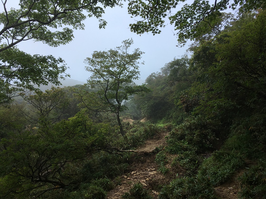 I was enjoying whiteout view during the lunch but the weather was improving so I can see the blue sky and the grounds. There are a lot of dragonflies like when I went to Mt. Ibuki, and they were being captured by children due to an event. When I looked up the weather information on the phone and concerned how long this good weather would hold because in many cases, the mountain weather in afternoon can easily go bad. So I began my descent from 11:00am. The first thing I had to do is to find a starting point for center path. Because of the constructions in the summit area, certain roads were closed.