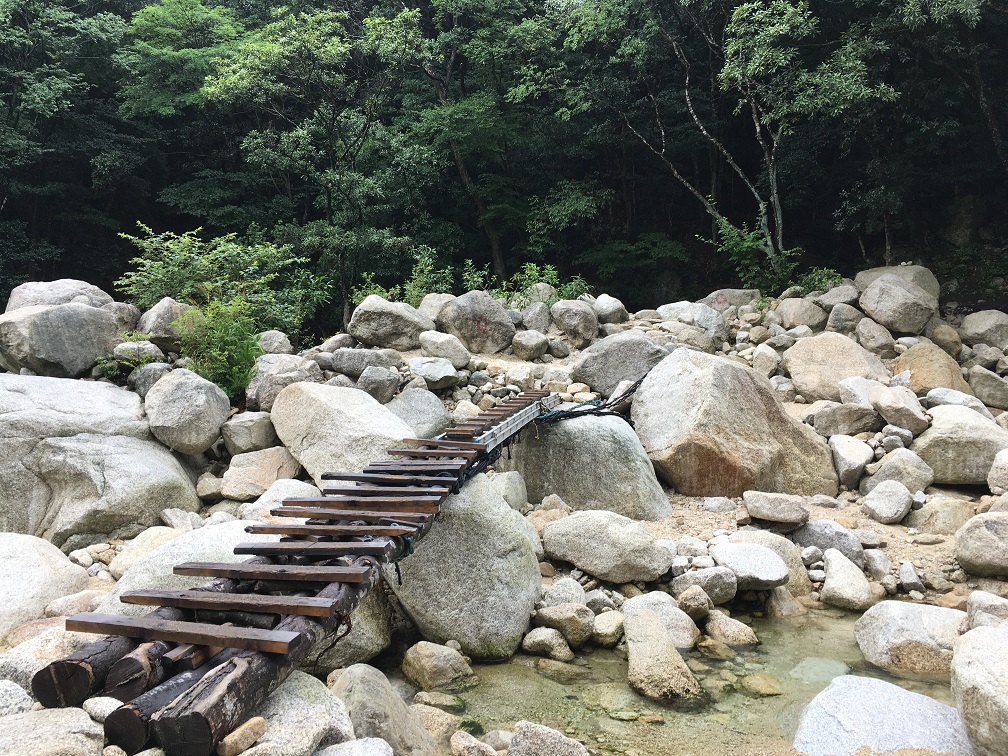 I began my ascent, it started out with a regular trail, taking a detour and stopped by at a waterfall before I continue. The path is overlapped with regular road for a while, following the rocky area, where I expect it would be a nightmare event if I stay there for the rainy day. I passed the blocking structure and followed up the rocky area. The path was partly destroyed over the storms in the past years so it was much more difficult than I imagined.