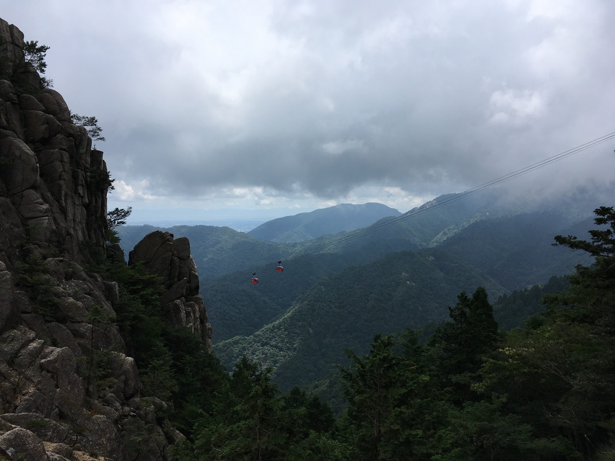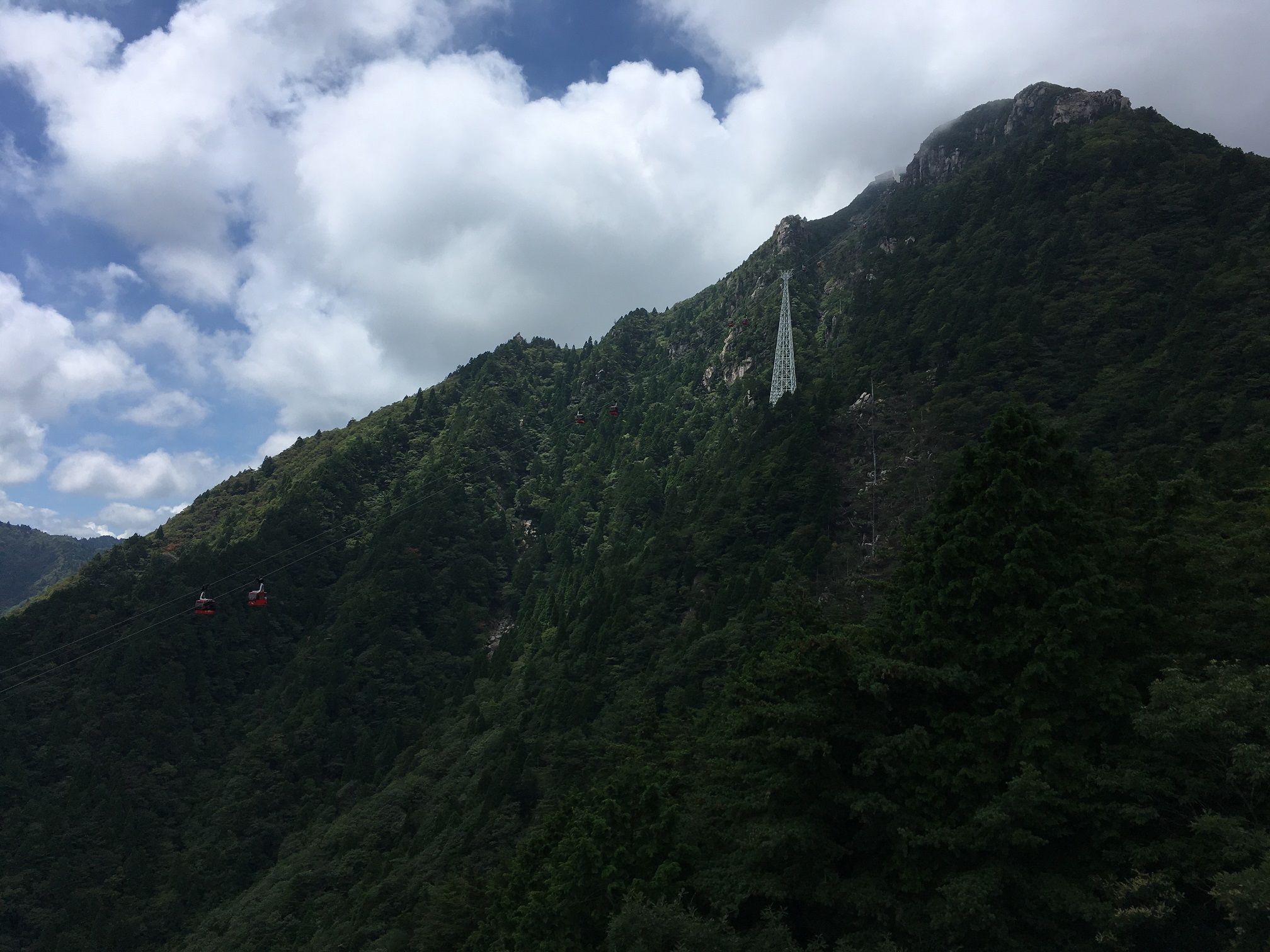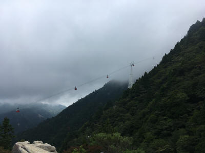 12:12pm, ropeway going through clouds