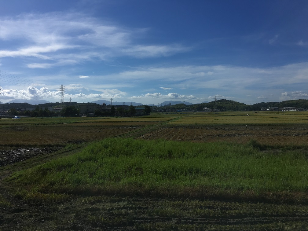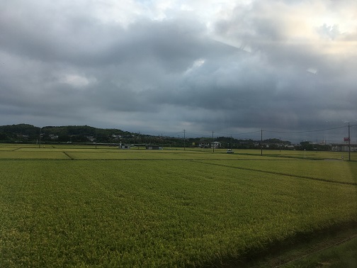 A rapid train, carrying a comfortable level of people departed from the underground station and soon reached the ground level. The train moved toward Yokkaichi. There are groups of passengers without bags and looked having no business, probably they did not go home last night and going home on the first train in the morning. I looked outside where cloudy, and was freezing inside the car cold because of too much air-conditioning. I watched the train crossed many rivers surrounded by farmland. The train arrived at Yokkaichi on time. One more transition to go.