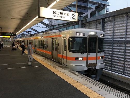 There was one leaving at 2:59pm, and it smoothly moved toward Yokkaichi. There were not many passengers in the car and most of us were hikers. when the train left, the train gets more crowded at each station and some people needed to stand by the time the train arrived at Yokkaichi station. There must be firework show tonight by hearing those people.