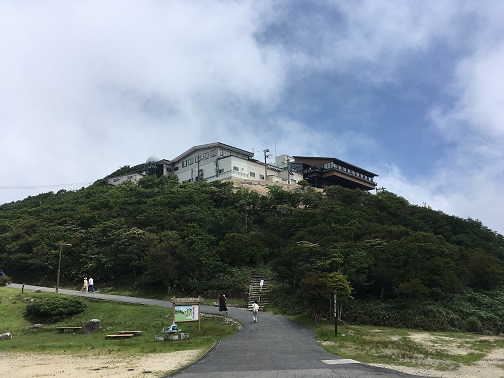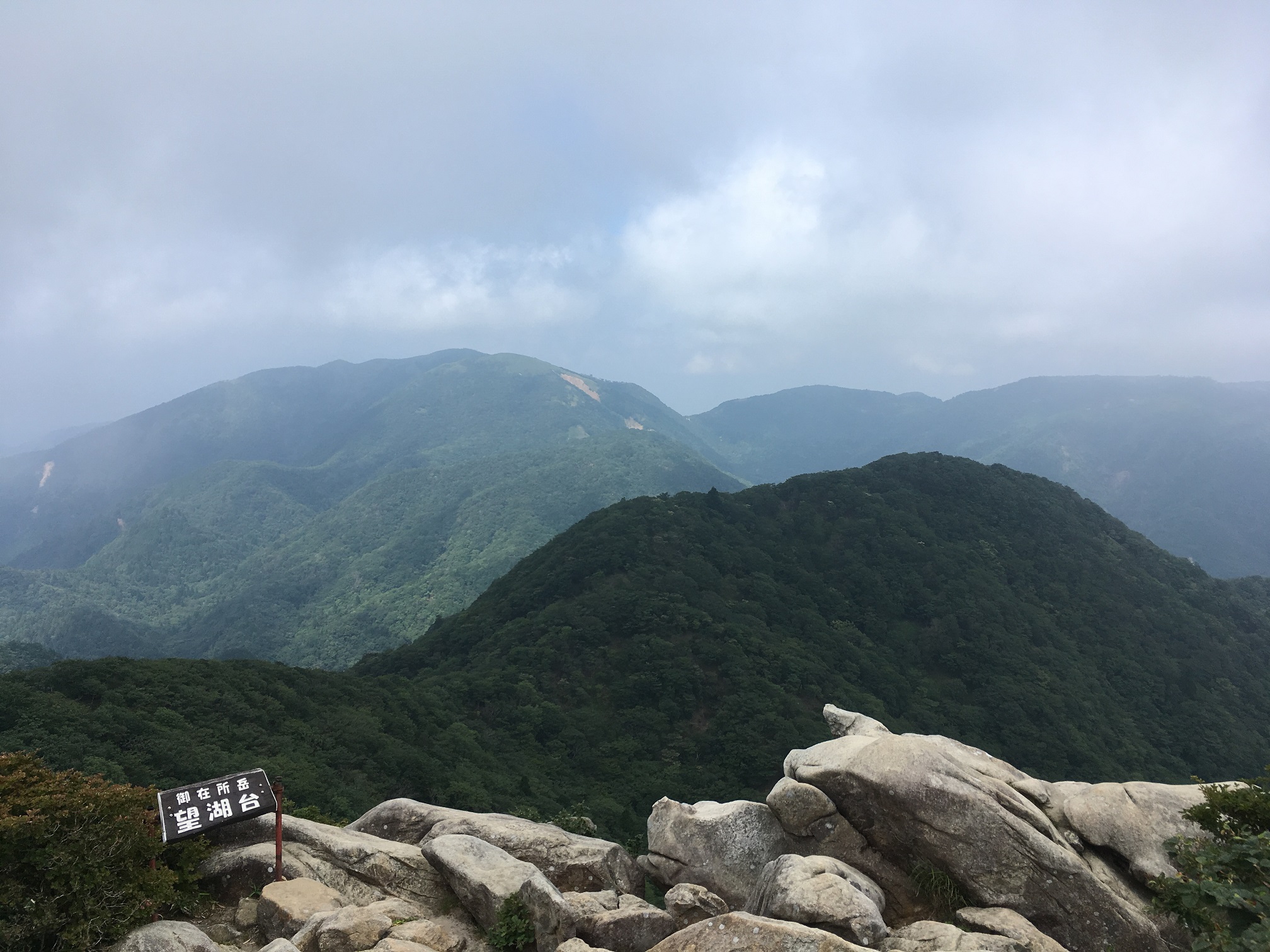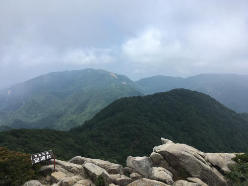 I returned to rocky area, proceeding with the rabbit ear rock with chain links, Soon the path is changed to more in the forest look, and reached 8th which is Kunimi pass. I took left and began proceeding further to higher area. When I start hearing the noise of people chatting and the sky is getting cleared, that's the sign of reaching the goal. Walking up the stairs and I finally took a breath.