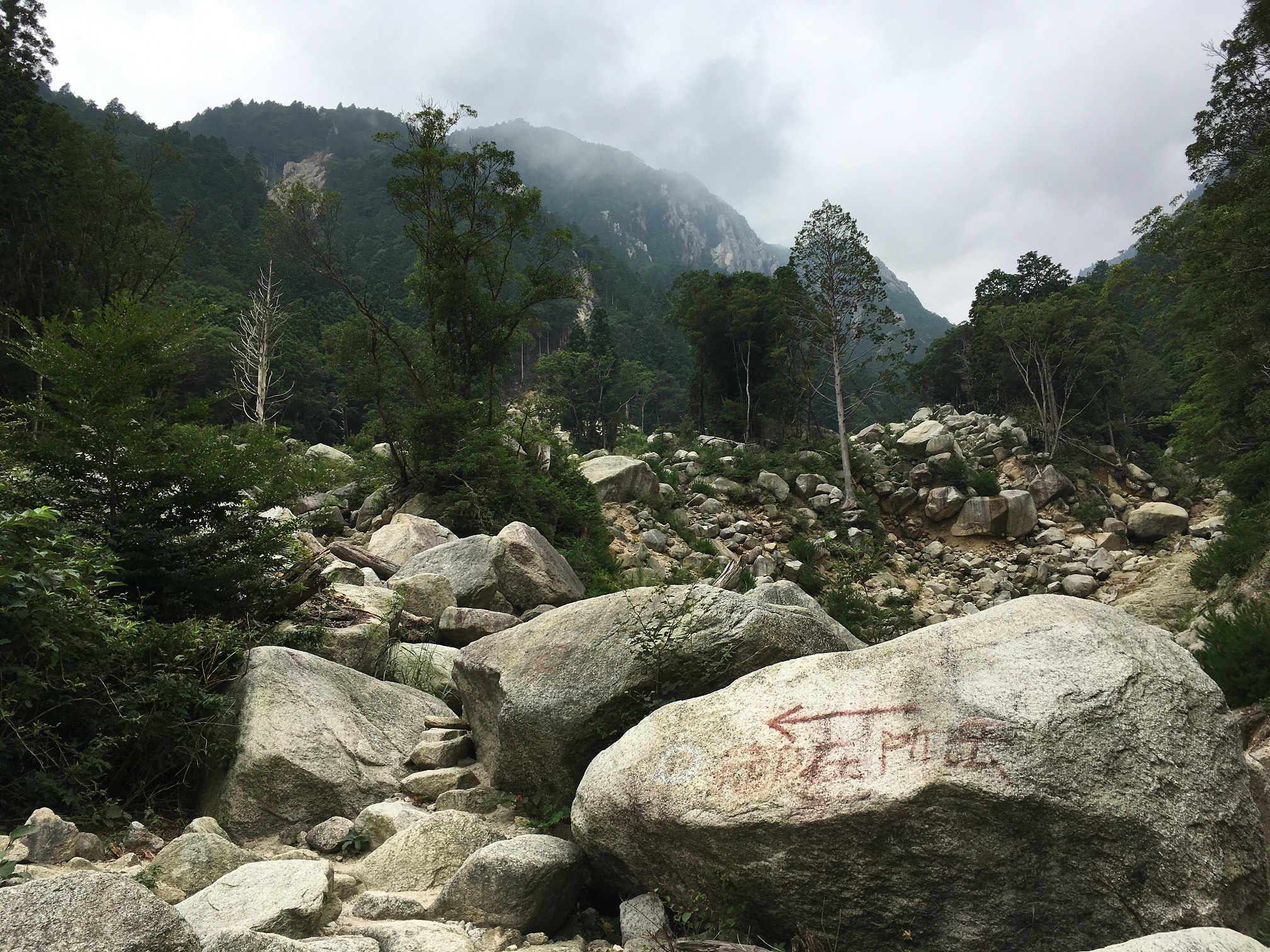 After going up the stairs at the entrance, I proceeded straight on the path. I skipped the Aotaki this time. I walked up a hill and followed the river bed. There were several people among with me but they walk much faster than I do. I guess I have to train more. I crossed the gate like structure to stop boulders, then crossed seven pass before making a stop at a cottage. There were some people who were talking about triathlon and I had some chat with them.