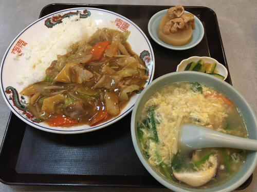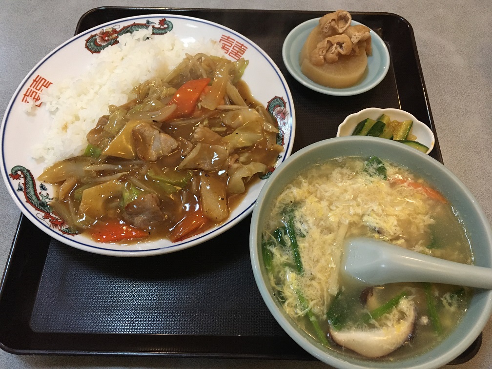 The bus moved toward Iida station under dark sky. I can see many stores, including some restaurants. I am getting humgry. The bus reached the drop point at 6:09pm, just 10 minutes late. After getting off from the bus, I decided to grab a dinner first. Iida is a bit hard to place to find restaurants. There were a couple of Izakaya places in front of the station, but I wanted something different. I found a Chinese food place which did not have any customer inside, so I asked store staff if I can eat here and the answer was okay. I took my seat and picked Chinese Bowl and Egg Drop soup. They were served very hot but delicious. I ate within 15 minutes. I paid \1,260 and left. Walking under dark sky now with chilly wind, I needed to find my way to the hotel so I walked back to the station to get my bearing set.