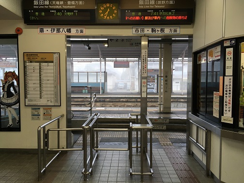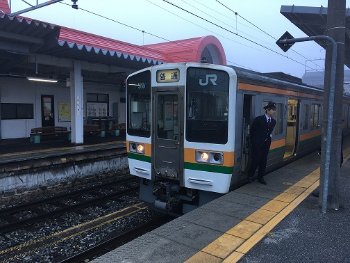 After arriving in front of the station, I realized this place is not manned. I am glad I bought my round trip ticket. It was nice sunny day, I put my rice on the floor and waited for the train to come. I was chatting with a guy in a dress suit that he came here to race after visiting Tokyo. He is from Nagoya also and will be taking a bus from Iida as well..I might see him again soon.