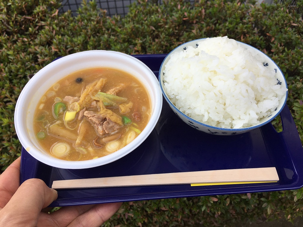I get my certificate printed, picked up a bowl and a coupon for pork soup as finisher prize. and walked to the building to return the rice sac, in exchange I received 10kg of rice which I feel much heavier than the sac I was carrying. This makes me a bit obnoxious because I have to walk back to the train station. I get changed in a large hall and walked out with the rice bowl I received at the goal. I had two serving of rice with pork soup. I see some people bringing their own seasonings and I guess I should do next time.