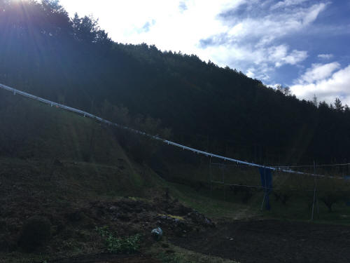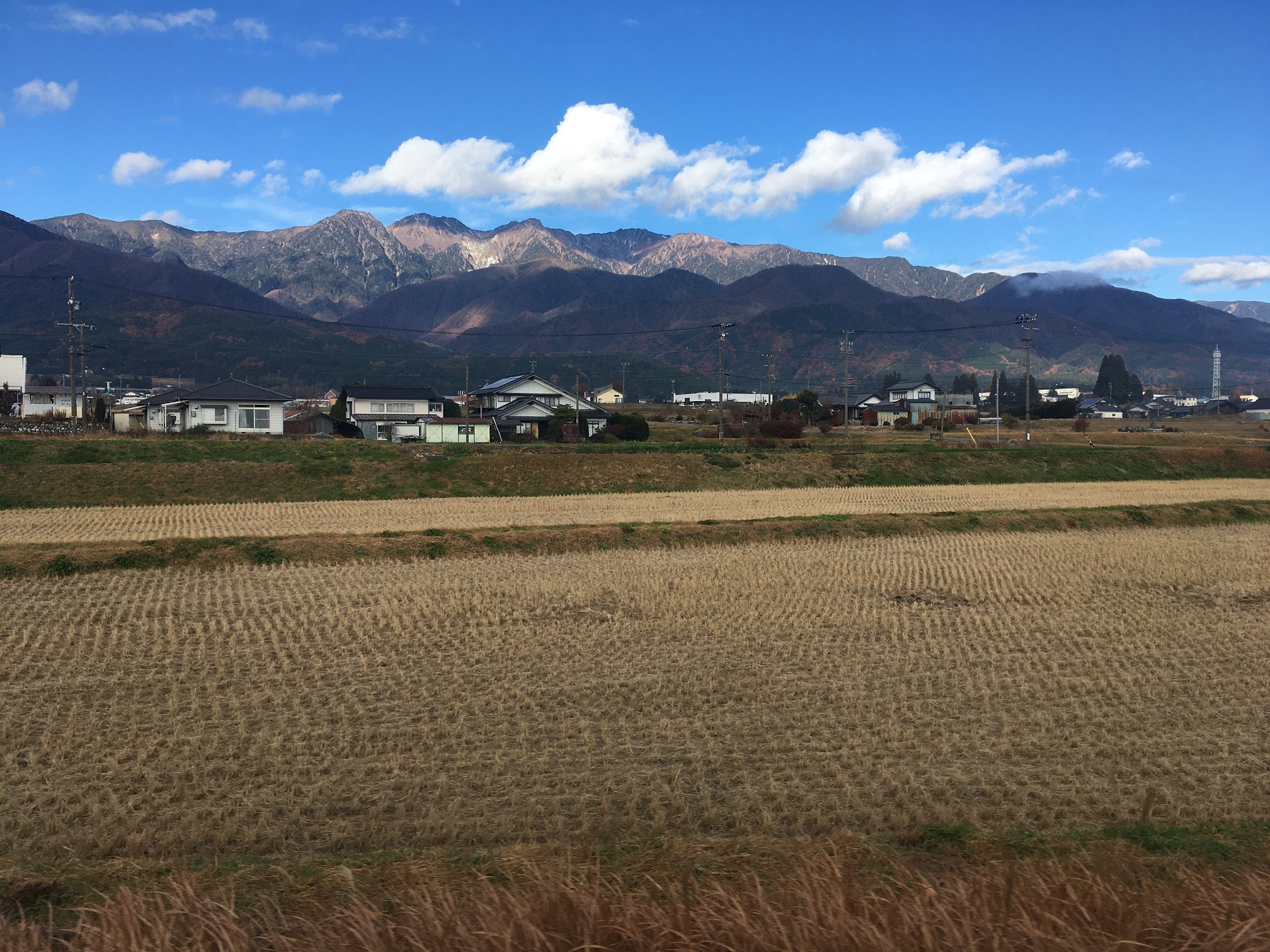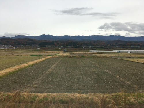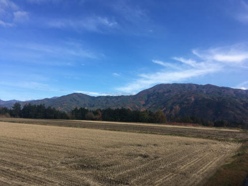 Catching a train leaving at 7:41am, I took a seat by window and watched the train move toward north while making many stops. The beginning is under foggy condition, soon the weather got cleared and I can see the central Alps, then got foggy back again sometimes. The railway was not straight, many windings and ups and downs. In between, I can see farm land, apple trees and persimmon trees. Some are making dried persimmons.