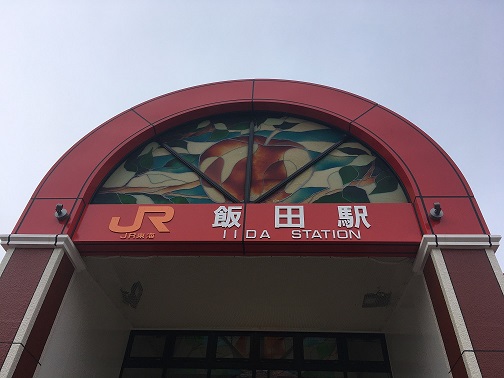 The train at Iida on time, and I got off and walked outside.