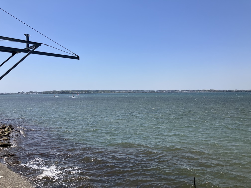 I turned into Pref. route 323, crossing Nakanoshimao Bridge, Hamanakoo Bridge, watching people doing windsurfing, changing into pref. route 379.