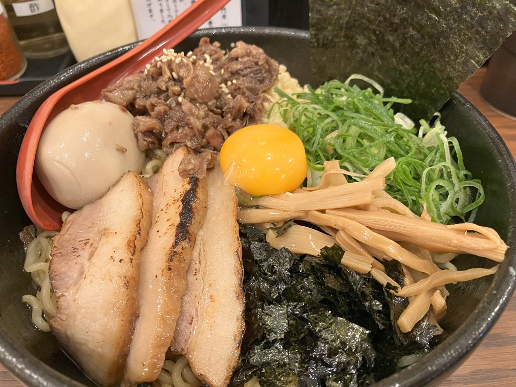 I come back to Sannomiya, walked around with my bags and I was a little getting tired of it. I walked to the west and found a noodle shop names Kobe Nadahachi. I ordered Bokkake Mazesoba Special. The wind outside was blowing hard so warm noodles kept me warm. I finished it quickly and decided to take a walk a little more.