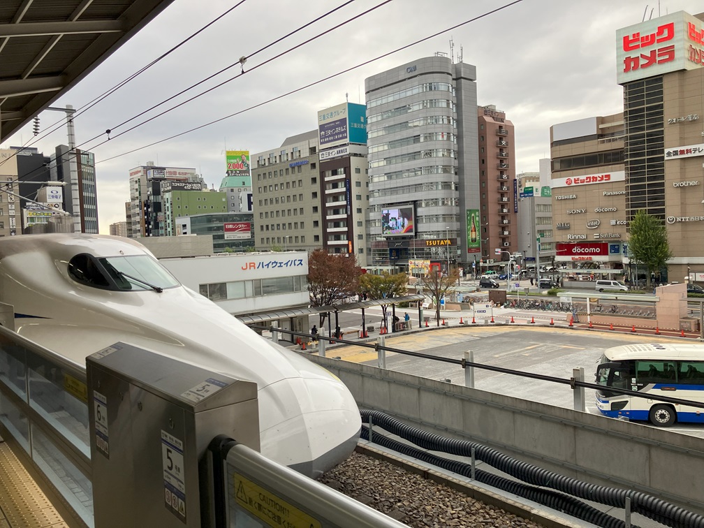 Walking down to the hallway, moved to the gate for Shinkansen. It's been nearly 4 years since the last time I used the bullet train. I quit travelling on trains after COVID began spreading around. I waited for my train to come. It was rather chilly if I do not move, and there are many people on the platform, they walk into the cars in about 2 minutes timing while many more coming out from the same cars. I get on Nozomi 13 which came in 3 minutes behind the schedule and took a seat. The person next to me must be travelling quite long hours now, I can see the newspaper is done reading, and PET bottle is almost empty.