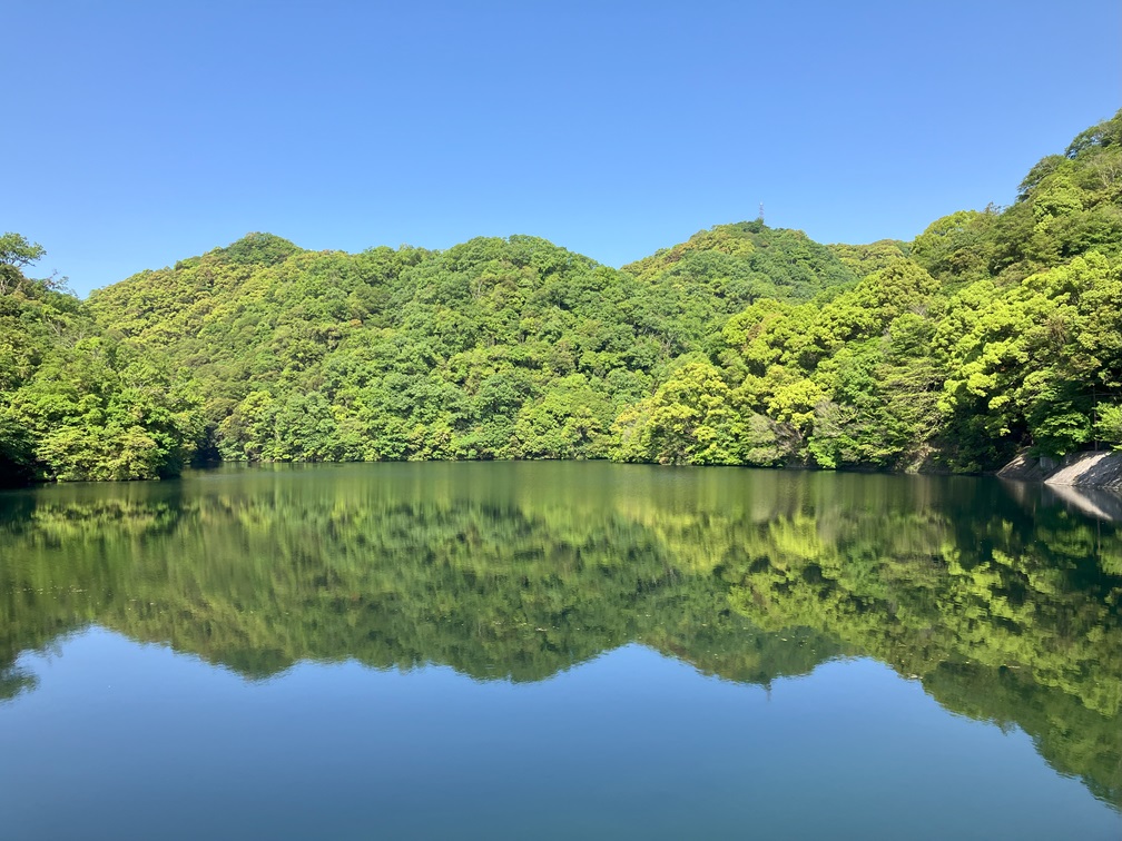After crossing the gate, I then began walking toward Nunobiki dam. The bridge to reach there is old, made of steel enforced concrete, and the dam itself is old as well, built back in 1900.. The surface of reservoir was calm, I can see the reflection of the sky and trees surrounding in fresh blue and green colors. It was a 10 minutes walk from the last break.
