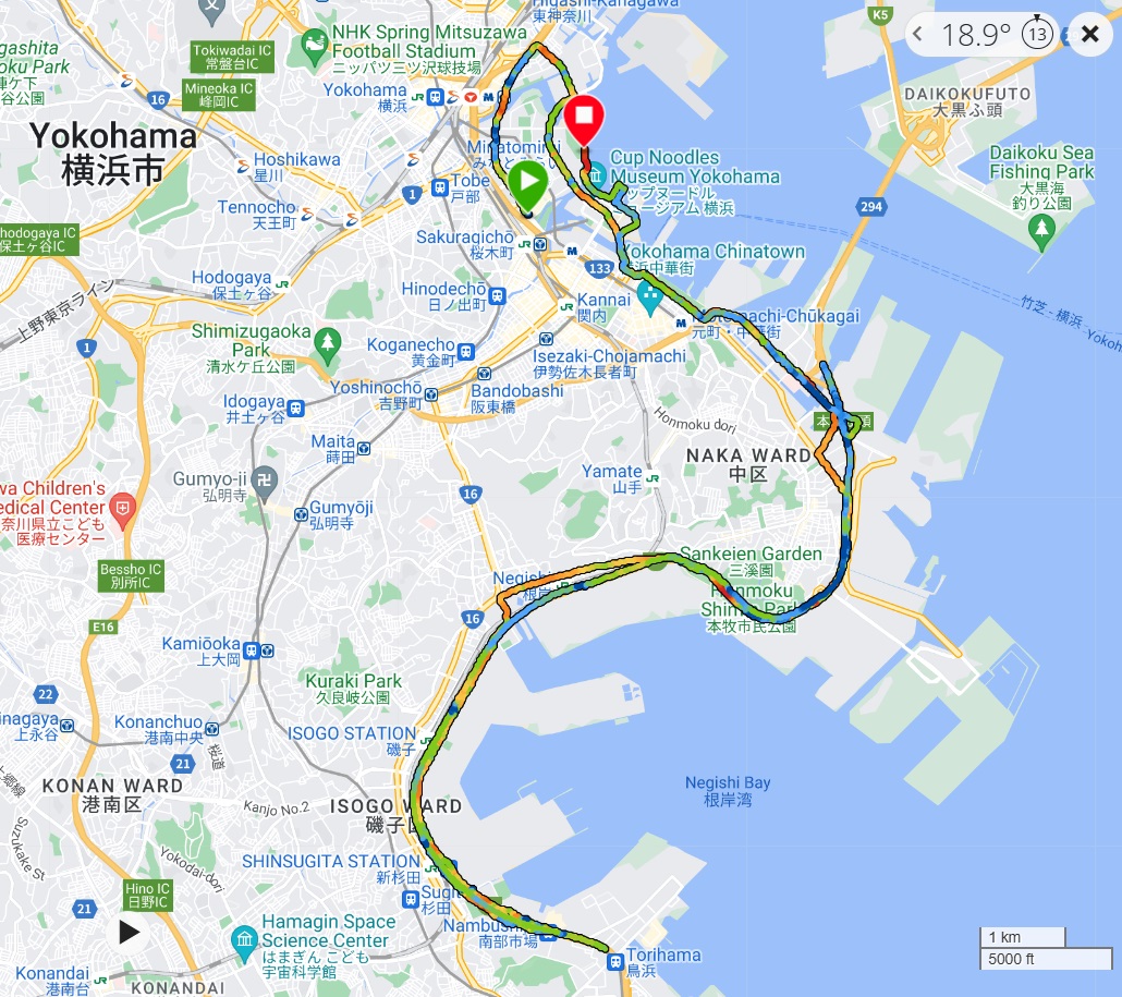 Running by Yakashita Park, the street is somewhat western style so it was beautiful, kept going south to Honmoku, then began running under the expressway that provided runners shades to cool off.