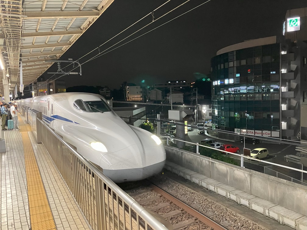 Bought last minute gift at a store and headed upstairs. I finally get to buy a bottle of coke. Walked to the position for the car 2, and waited for the next arriving train. I was a little surprised that there are people getting off from either Shinagawa or Tokyo. It's a short hop. I get on the train and found a spot in the first row. The guy by the window is sleeping with his phone on the table. The lady at aisle seat also sleeping. Japan is so peaceful. The side back to Nagoya is just a shy of 1.5 hours so I was just checking items on the phone and kept myself awake. The train moved under dark, night sky. After passing Mikawa-Anjo station, it's only 10 minutes away from Nagoya so I pulled out the bag and walked to the deck. I get to see local train stations which line running parallel. Finally I am back at Nagoya.