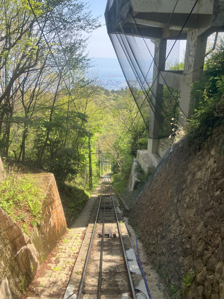 The walk towards the cable car station was quiet as usual, it may be because the path was in the woods and less travelled. I arrived at the cable car station at 13:10, there weren't many people waiting so I quickly bought a ticket and joined the line. The next car runs in 10 minutes so I came in at the right time. Passing the gate and took my seat. The tram moved slowly and steady with many passengers, I get to see the nice view under sunny sky,