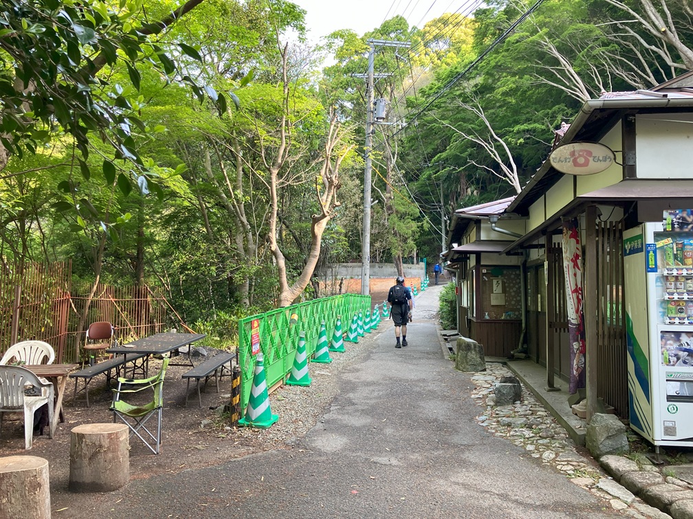Walked pass the shops and restaurants to get back on trail road. A few more miles from here I can reach the summit. The path is on and off with the prefecture road.