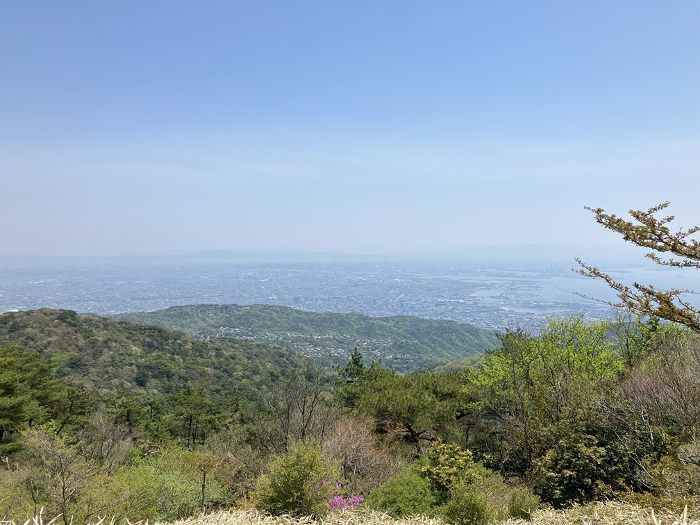 Continue going up the trail and arrive at the summit of Mt. Maya where observation deck is setup. Although it is a little chilly, I was sweating with t-shirts and shorts. From here, I can see nice view of Kobe and Osaka area.