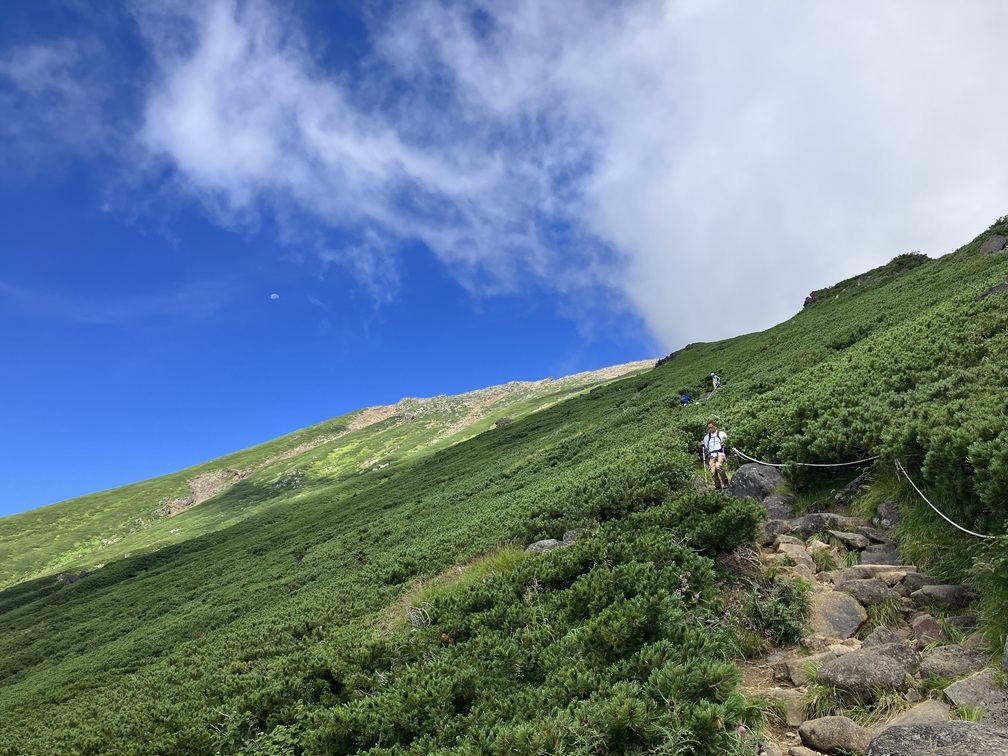 Arriving at Otaki peak at 7:00am, the summit do not have anything to protect me from wind so it was just chilly. I think I still can make it to the Kenngamine so I continued on the trail reaching there. There was a warning that certain areas do not have cell phone signal, and it is a risky area from the previous eruption so I'd better get done quick.