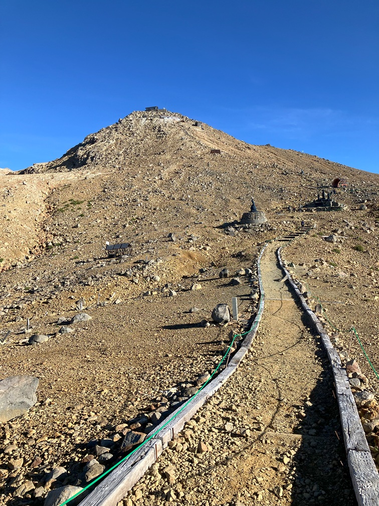 The Tsurugigamine is the peak of the whole Mt. Ontake and it is the place where I was aiming for. The trail is only open for the limited time over the year so I won't miss the chance today. The path was a single gavel road.