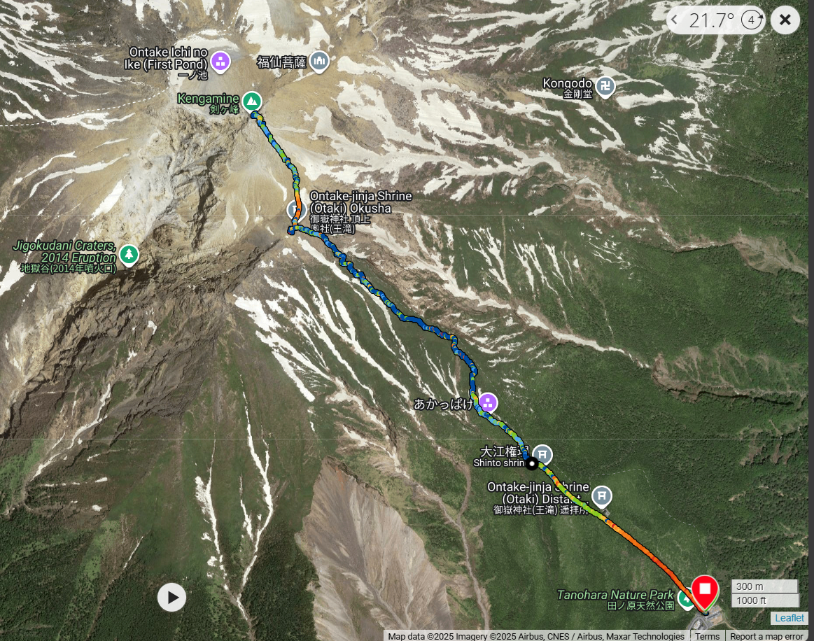 Introduction: When I was in elementary school, my brother took me to a trip during the summer to Mt. Ontake, but failed to reach the summit a number of times. After coming back to Japan, I still had that in my mind and wanted to reach the summit one day then the COVID came. The bus route from JR Hidaosaka has long gone, and the only route available for me now is to drive up to Otaki village and hike up from there. I did some researches and found there is a big parking at the trailhead so I picked a date over my summer holiday.